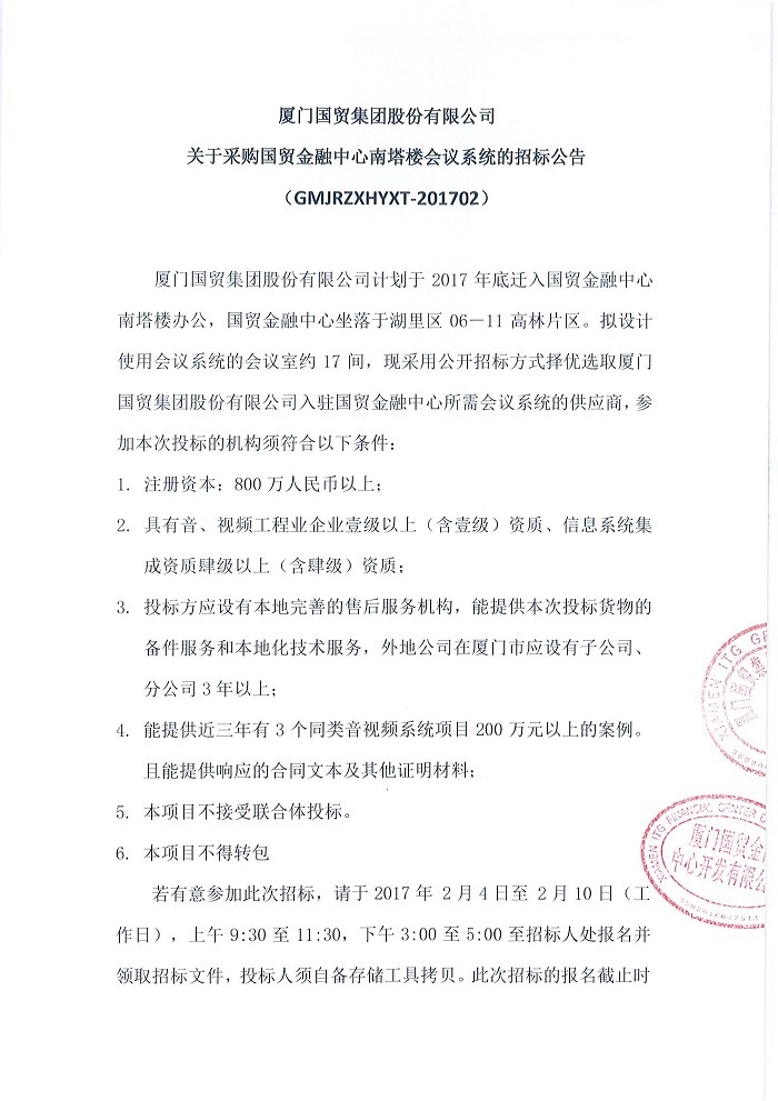 國貿(mào)金融中心會議系統(tǒng)的招標公告