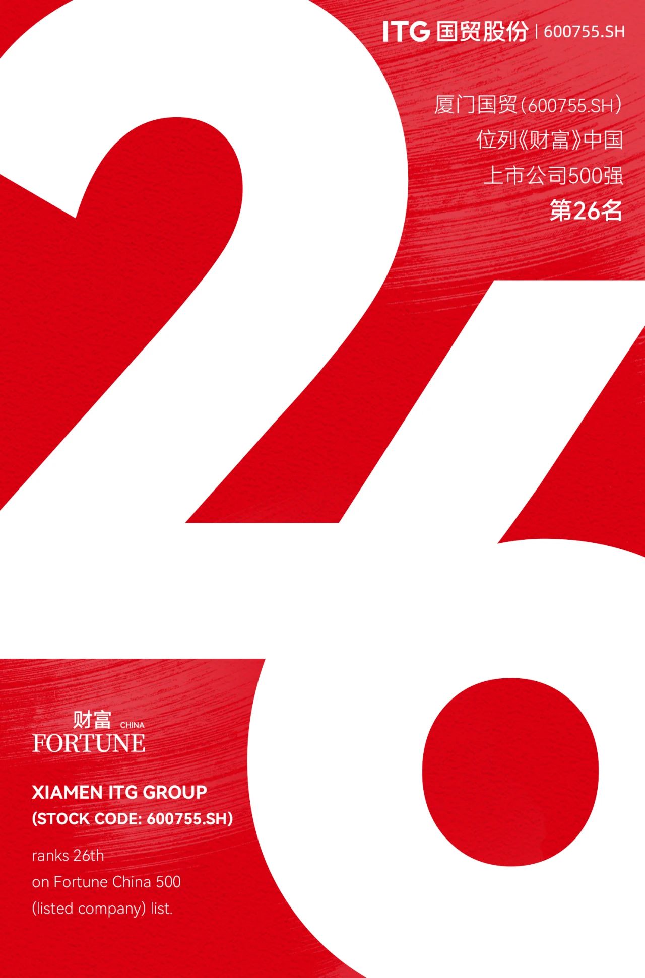 廈門國(guó)貿(mào)位列《財(cái)富》中國(guó)上市公司500強(qiáng)第26位